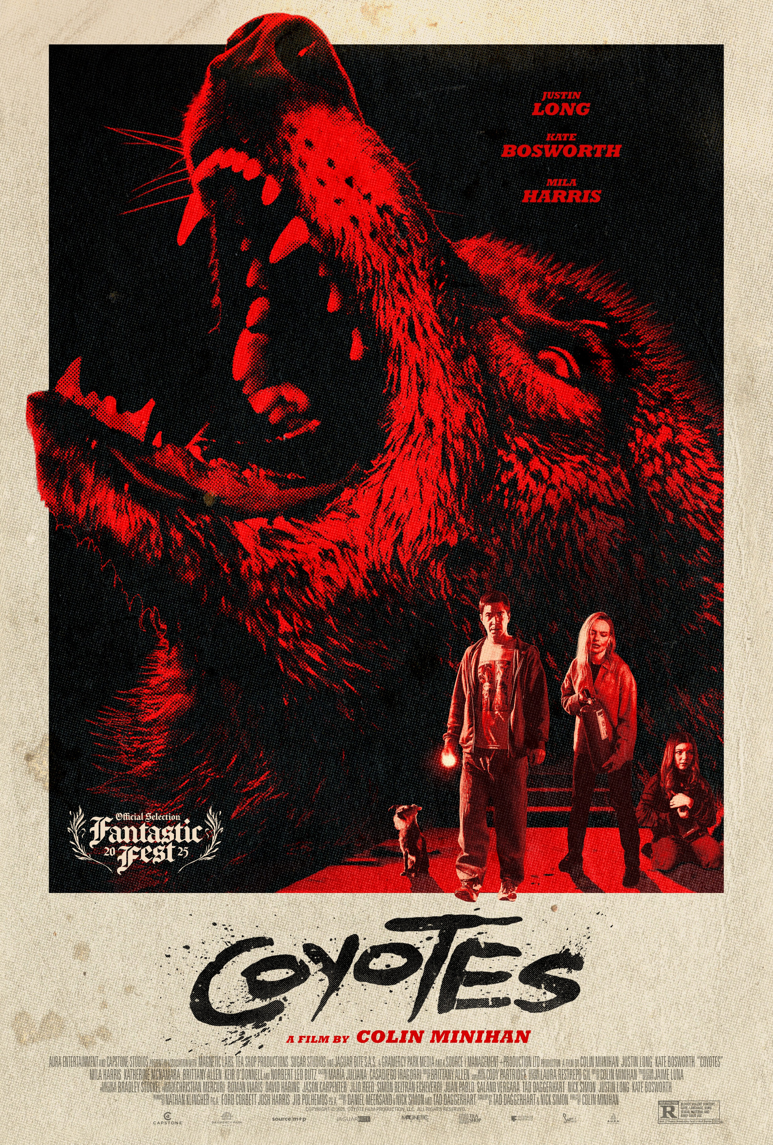 Living outside of Chicago, I’m used to getting the occasional Ring doorbell alert about a prowling coyote. They’re not exactly wolves hunting in packs, but they’re also not the cute, howling tricksters of cartoons. Coyotes are survivors, opportunists, and scavengers. And if you’ve got a small dog like I do, the thought of a midnight walk can feel like a gamble. So, it was with a strange sense of dread and familiarity that I settled into COYOTES, premiering at this year’s Fantastic Fest, a film that takes those suburban sightings and turns them into a full-blown eco-horror scenario. While it never quite leaps into campy absurdity like Cocaine Bear, it plays gleefully in the “when animals attack” tradition, walking a fine line between B-movie gore and serious ecological allegory.