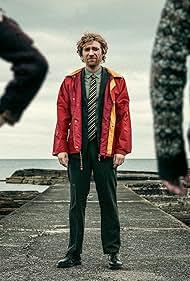Any time an object washes ashore that hints at another life (a magazine, a bottle, a sex toy) the siblings lock it away like forbidden scripture. These items are portals to curiosity, and curiosity is treated like contamination. Sandy (Grant O’Rourke), however, is naturally inquisitive. His lack of real-world experience makes him approach most things with childlike wonder that is both endearing and frequently hilarious. He marvels at simple objects the way other people marvel at fireworks, and his earnest fascination often produces the film’s funniest moments. Sandy is comedic because he is a grown man denied context, navigating adulthood with the emotional vocabulary of a child. His joy contrasts sharply with Isla’s vigilance, which reveals how two people raised in the same mythology can respond to it in completely different ways.