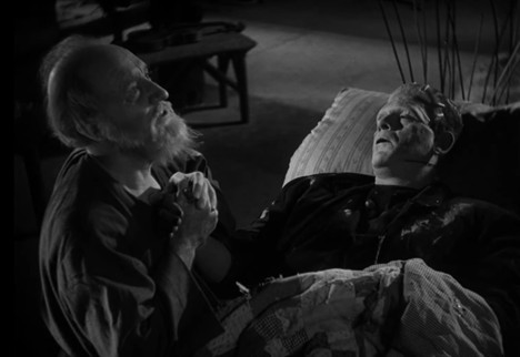 Of course, not everyone within a close distance of the film’s events is familiar with who the referent of “the monster” might be. The clearest example we see of unfamiliarity is the blind man (O.P. Heggie) who befriends Frankenstein’s monster. When some townspeople find the monster at this man’s home, he is truly confused by the fact that his new friend is referred to as any kind of monster, let alone the monster. While this man does not have the visual cues to see how the monster’s physical attributes significantly differ from the looks of humans who haven’t died before, his lack of knowledge of the fact that there is a monster in the town is not a result of his blindness. He is unaware of the monster because he is simply not included in the town’s community and therefore has had no opportunity to be familiar with the town’s notion that there is a specific and unique monster who has been terrorizing everyone. His loneliness becomes abundantly clear when he says, “it’s been a long time since any human being came into this hut,” further emphasizing his complete isolation from any form of community. If he had been part of the community, he probably would have joined alongside Minnie, the Burgomaster, and the rest of the townspeople in knowing exactly who “the monster” is without any further explanation.