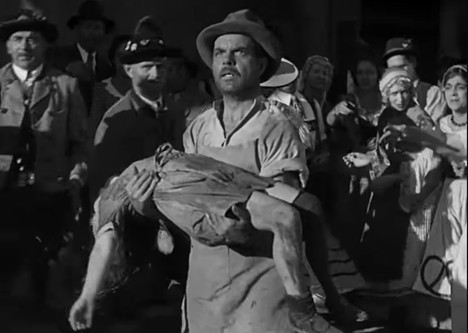 A quick re-watch of the film will quickly let the viewer know that Henry Frankenstein (Colin Clive) never really meant to create a monster, necessarily. In fact, Henry thought the brain Fritz (Dwight Frye) stole for the creation was “a perfectly good brain” until about halfway through the film when Henry’s former professor Dr. Waldman (Edward Van Sloan) tells him, “the brain that was stolen from my laboratory was a criminal brain.” Nevertheless, Frankenstein’s monster, though sporting the brain of a criminal, seems to lack the ability to intentionally commit any evil deeds. Regardless of whether he had evil intentions, he does demonstrate violence throughout the film. For instance, he causes the drowning of Little Maria (Marilyn Harris), and in an absolutely devastating portrayal of anger, confusion, and grief, Maria’s father (Michael Mark) walks through the town with his daughter’s corpse in his arms as he wears an indescribably pained expression upon his face. However, it is unclear that the creation wanted to kill, and even less evident that he had evil intentions in doing so. Did he even know what he was doing as he tossed a young kid into a pond? The flowers Maria had taught the monster to toss into the pond were floating. So, why couldn’t she float?